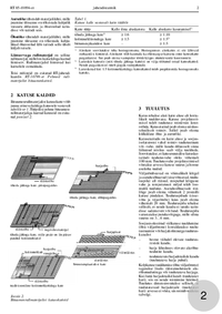 RT-juhendkaardis käsitletakse katuse katmist pehme bituumenrullmaterjaliga, tiheda jätkuga, kolmnurkliistudega ja katuseplaatkattena.